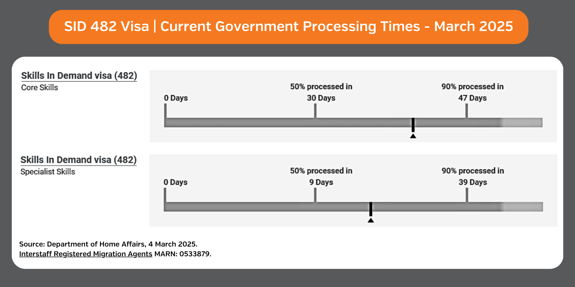 Government processing times for both the Core and Specialist streams of the Skills in Demand 482 Visa have been increasing.