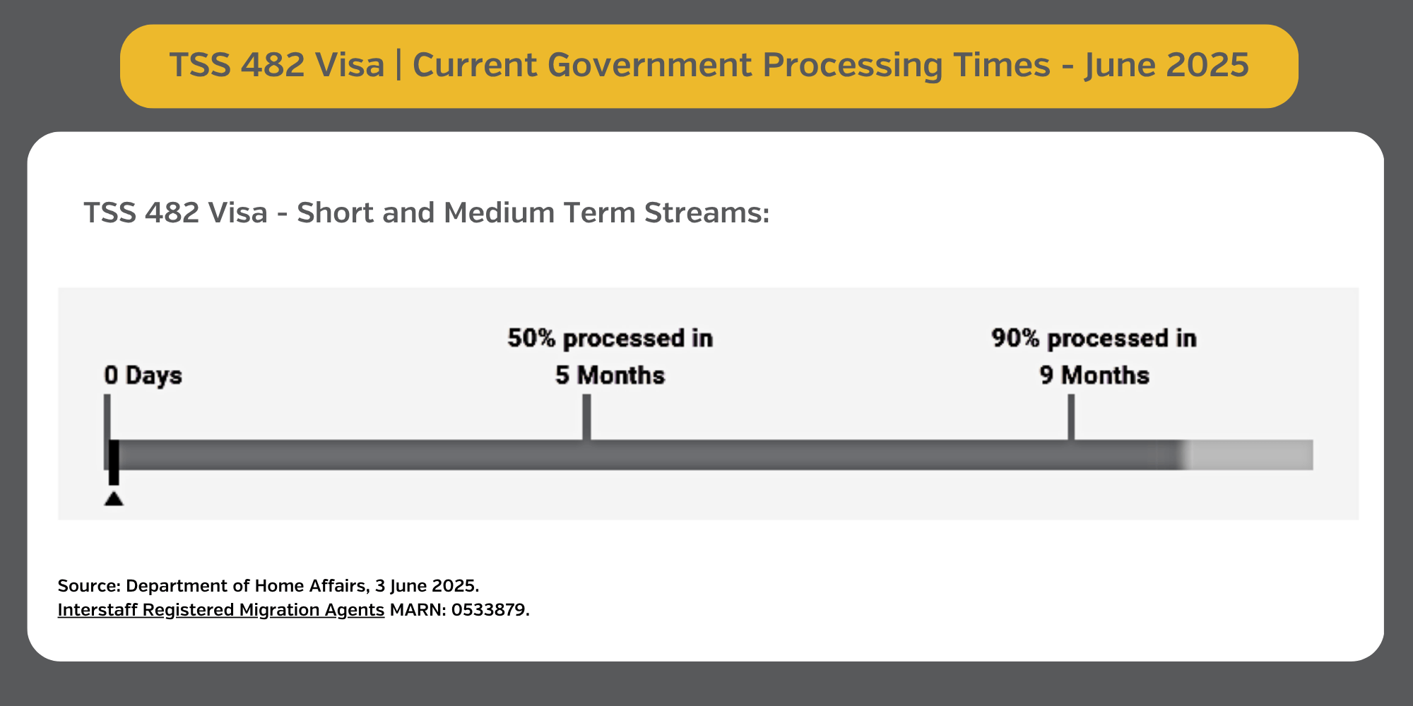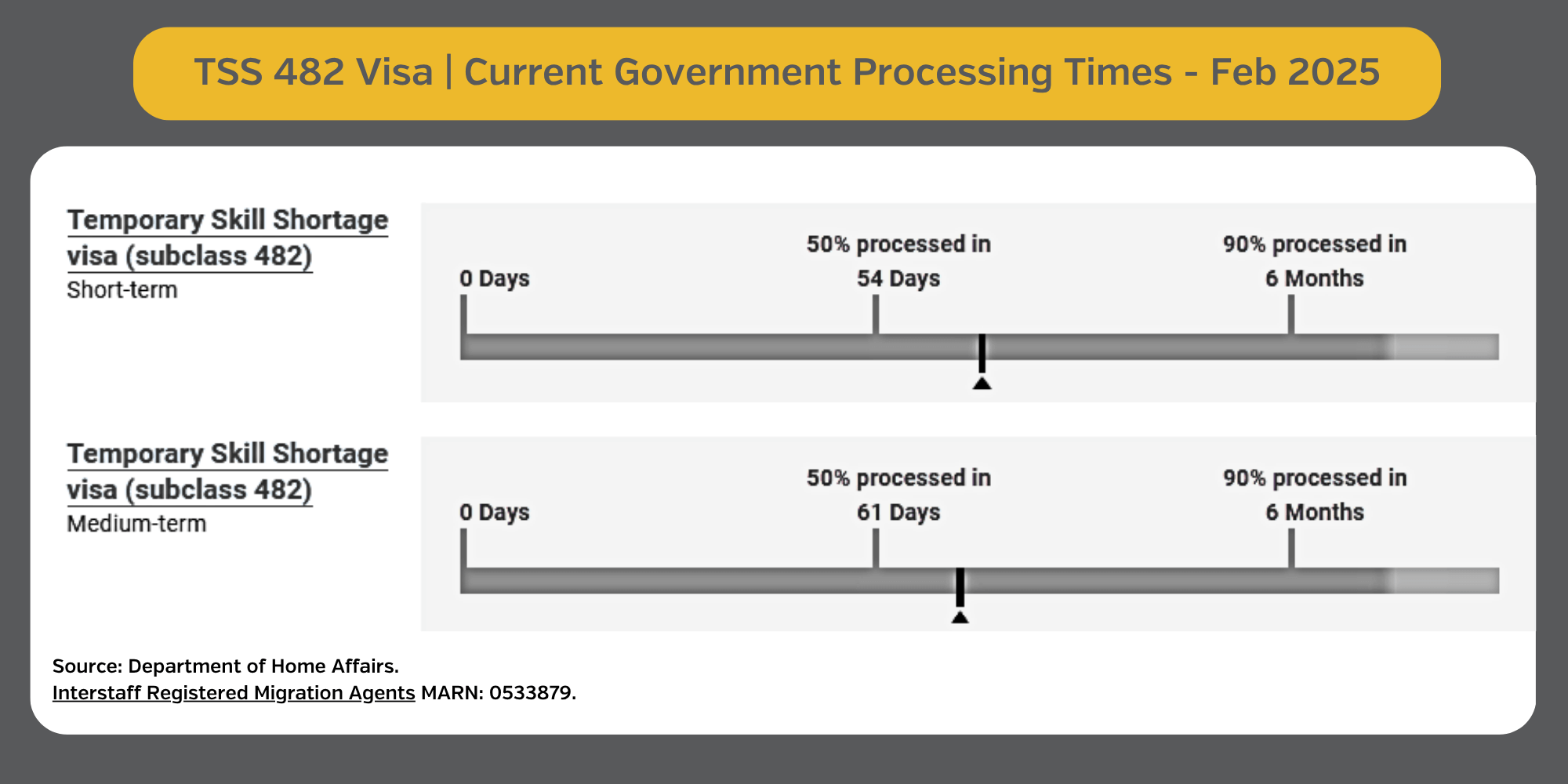 As you can see, current processing times for TSS 482 Visas (Short Term and Medium Term Streams) indicate that: