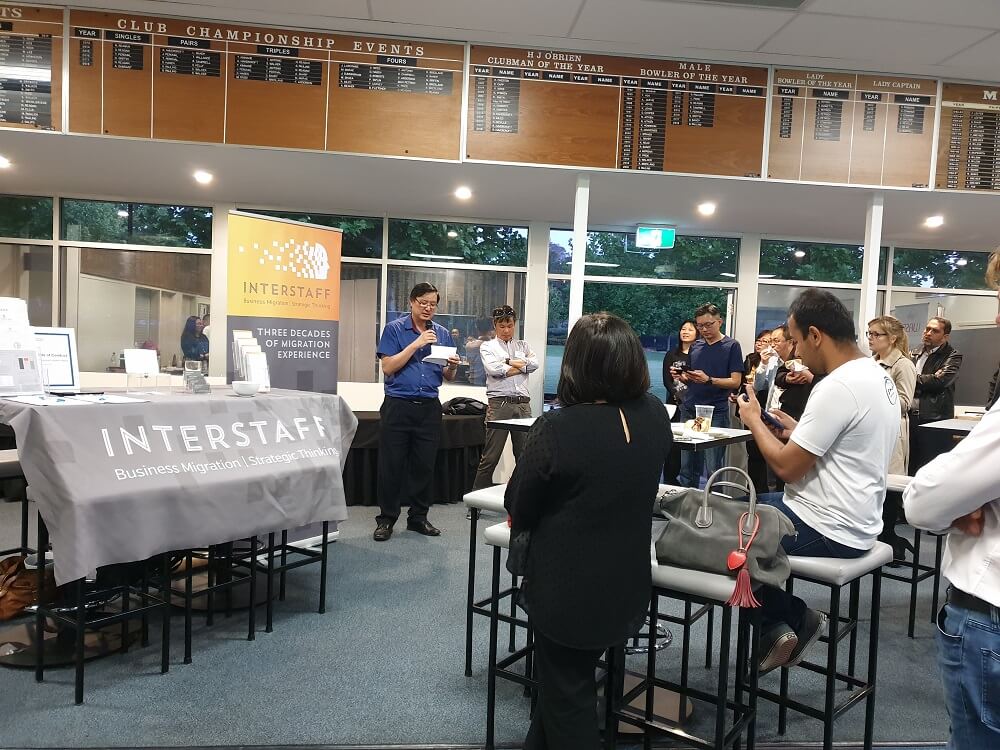 Above: Sheila presenting a lucky winner with the WA Singapore Business Connect Door Prize. Sheila also gave a presentation on Australia’s recent migration changes. In particular, Sheila addressed the way in which new regulations are making it more complex for new migrants seeking to live and work in Australia.