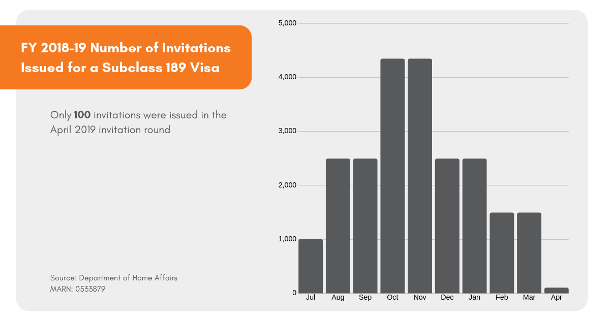Recently, the process has become even more competitive as the number of invitations issued by the Department of Home Affairs have tapered. In October and November 2018, the Department issued 4,340 invites per month, and this dropped by almost 50% to 2,490 invites per month in December 2018 and January 2019. In February and March, this figure dropped further to 1,490 invites and finally, in April only 100 skilled migrants received an invite Australia-wide.